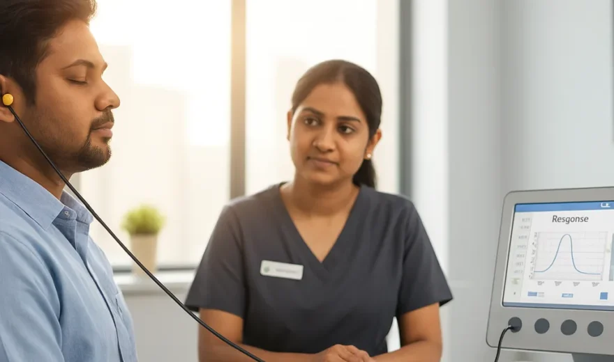 The Auditory Brainstem Response (ABR) test is a non-invasive tool used at Denoc Hearing to assess hearing sensitivity and neural integrity, particularly in infants and young children.Artificial Intelligence (AI)