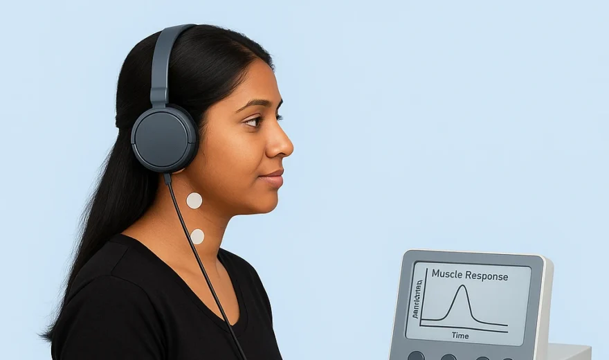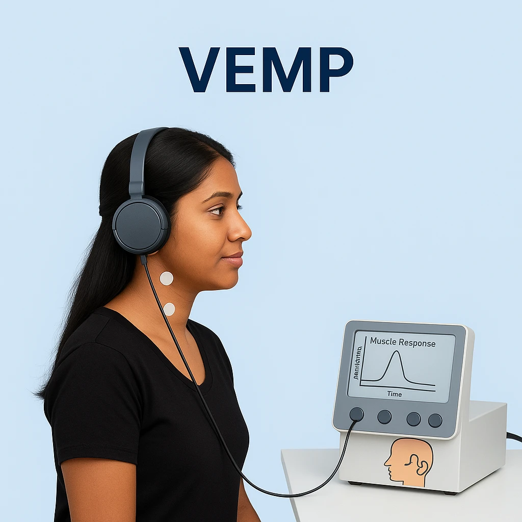 Denoc Hearing offers Vestibular Evoked Myogenic Potential (VEMP) testing, a safe, non-invasive procedure to assess the inner ear's balance structures.