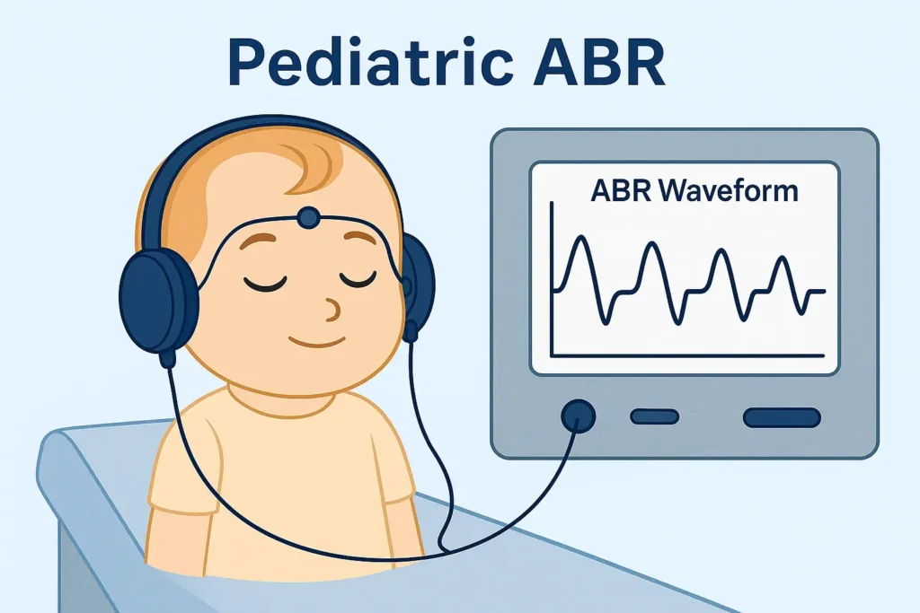ABR is recommended when there is a concern about a child’s hearing, especially in newborns, delayed speech cases, or uncooperative young children during regular hearing tests.