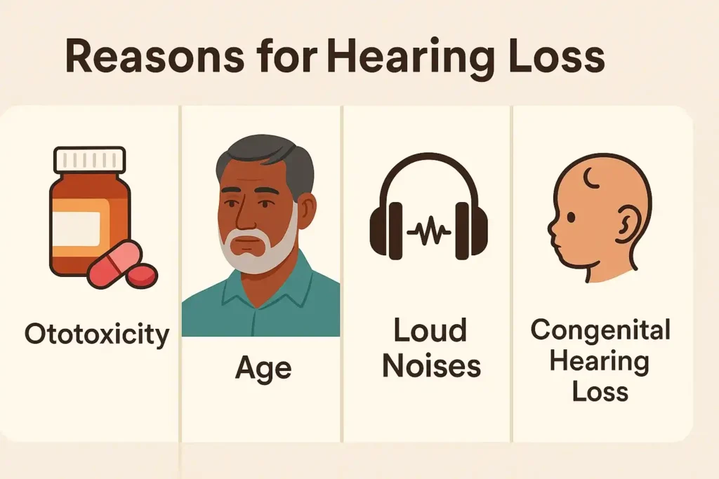 Another common cause of hearing loss is damage to the ear from repeated exposure to loud noises over time.