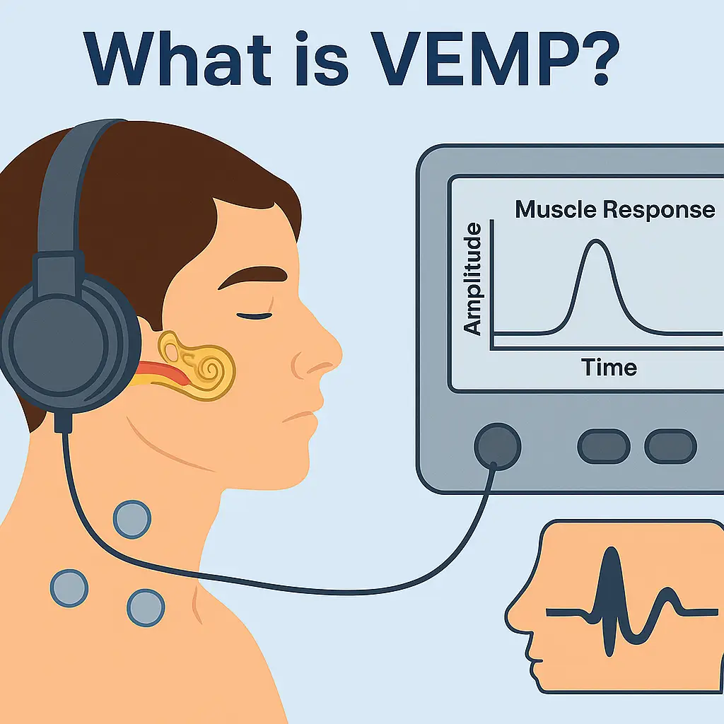 At Denoc Hearing, we offer Vestibular Evoked Myogenic Potential (VEMP) testing—a safe, non-invasive test that evaluates the balance structures of the inner ear, specifically the saccule, utricle, and inferior vestibular nerve. VEMP helps detect vestibular disorders and monitor lesions affecting the balance pathway between the inner ear and brainstem.